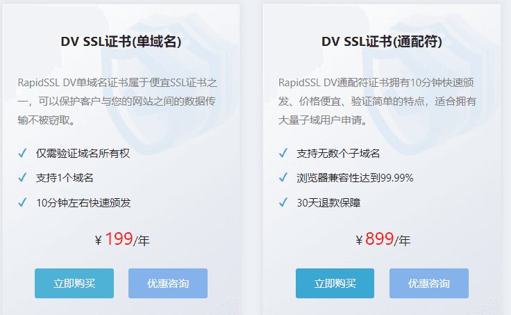 极速颁发:仅需验证域名所有权,最快10分钟内完成签发,让您的网站快速启用HTTPS加密。