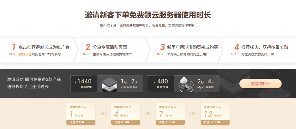 三:邀请新客下单免费领云服务器使用时长(最长12个月,还有免费数据库时长、现金红包、实物奖励等你来拿 )