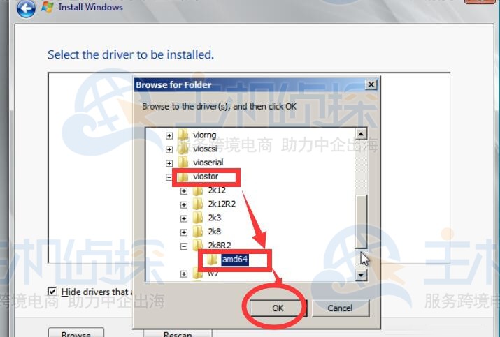 找到Vios”不可描述”文件夹,点击展开,选中amd64,然后确认“OK”;