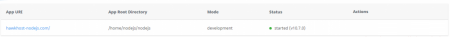 如果您回到Node.js App页面上的Web应用程序页面,您现在还会注意到您拥有所有Node.js应用程序的列表及其所有相关信息以及快速停止/重新启动,编辑和删除该应用程序。