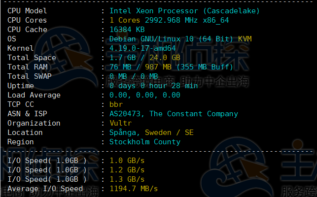 以上就是Vultr瑞典斯德哥尔摩性能速度简单测评介绍,Vultr其他机房也有测评,小编也有整理,大家如果想了解的话可以参考Vultr测评。
