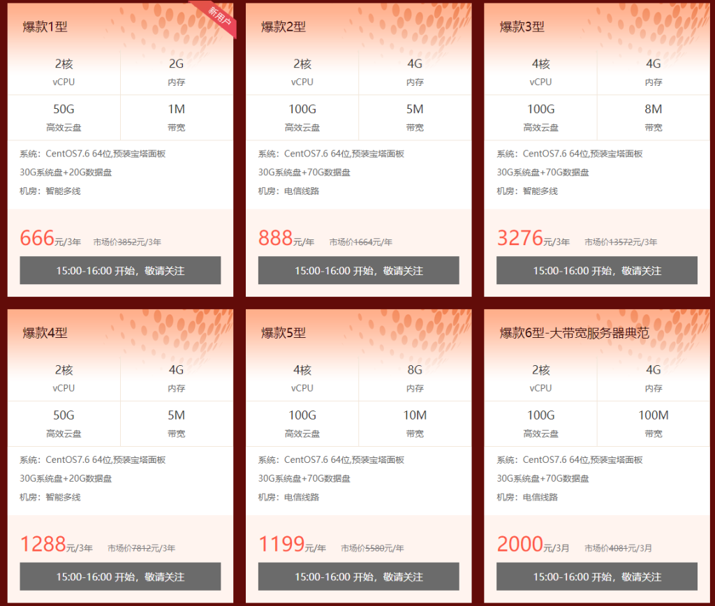 活动期间(2021.11.01 – 11.12),每天10~11点、15~16点这两个时间段,以下爆款云服务器限时特价抢购。(说明:爆款1型仅限新用户购买,且每账户只能购买一台。)