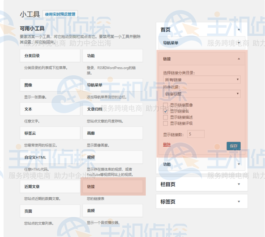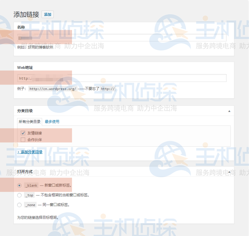 后台菜单“链接 – 添加”,增加你所需加的链接,和链接的相关信息填好。