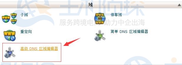 5、下面就需要设置TXT记录,在控制面板的首页中,在域的栏目下选择“高级DNS区域编辑器”;