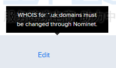 唯一的例外是 *.uk 域名。如果您尝试更改面板中的 WHOIS 信息,您将看到以下消息: