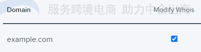 1.单击位于您的域注册旁边的Whois 信息按钮(或者,如果您有多个注册,请选中要修改的域旁边的Modify Whois?列下的框。