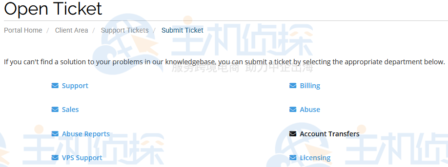 2.HawkHost客户区登录后,从主菜单导航中选择“打开工单”链接: