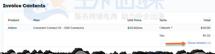 在已付和未付发票中,您可以通过单击发票内容部分 下的显示详细信息 [+]链接 来查看完整的详细信息。