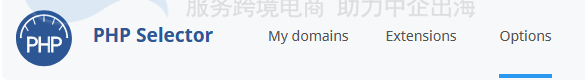 2、从 Select PHP Version 界面中选择 “Options”菜单: