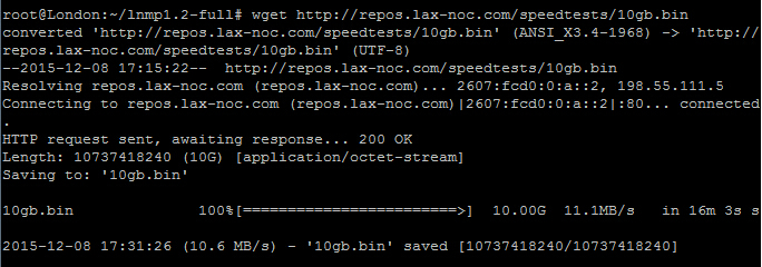 最后再来拖个美国QN机房的10G的文件试试看,稳定在11.1M/S的速度,看官你觉得如何?