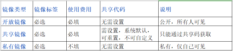 云镜像模板类型说明: