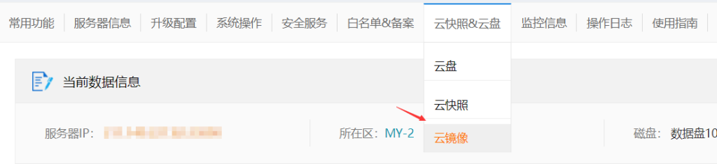 进入【业务管理】-【服务器管理】,点击对应要创建云镜像服务器【管理】按钮;