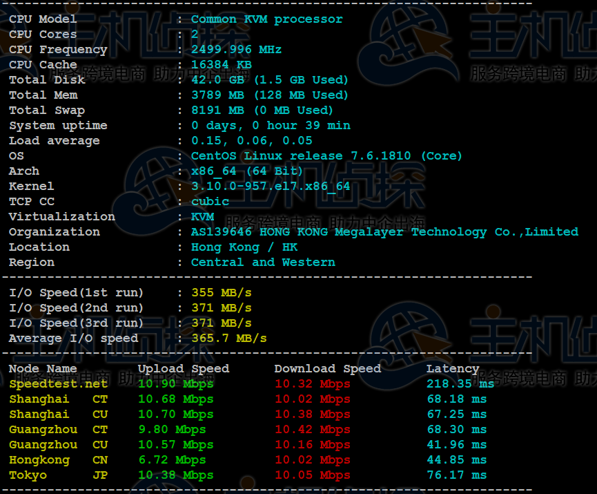 Megalayer VPS新加坡机房CPU和I/O读写: