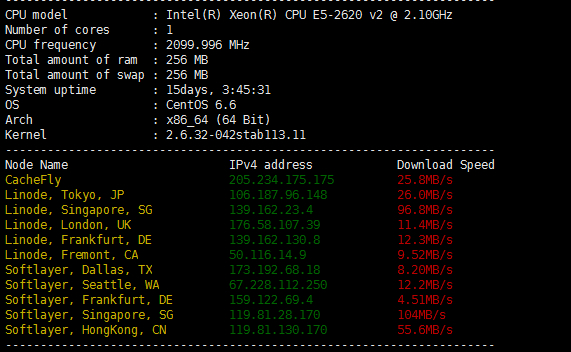 HostUS VPS新加坡机房配置、IO读写性能及下载速度测试: