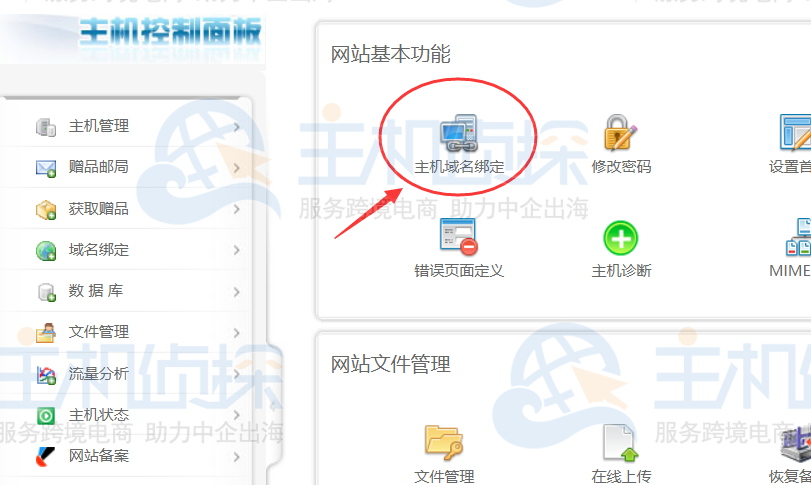 在业务管理中找到虚拟主机管理,点击对应主机的管理按钮进入主机控制面板。