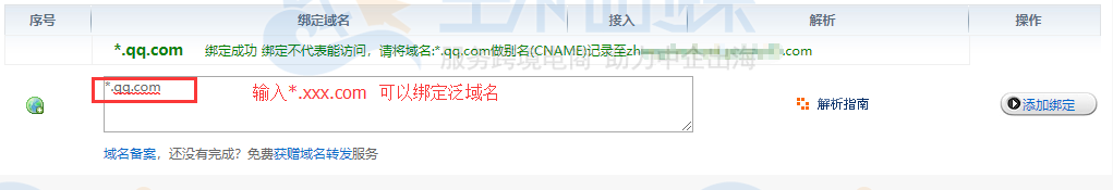输入要用于访问的域名(不带http),一般绑定www和不带www的。比如域名是abc.com,需要一个m.abc.com,就要填写m.abc.com,然后根据提示做域名解析。
