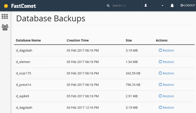 FastComet主机租用之后,建站之后出现被黑或者中木马的情况,需要恢复数据库,而JetBackup提供了一个易于使用的界面来恢复数据库。可以将数据库备份功能定位为 cPanel 中 JetBackup 部分的一部分。具体操作方法如下: