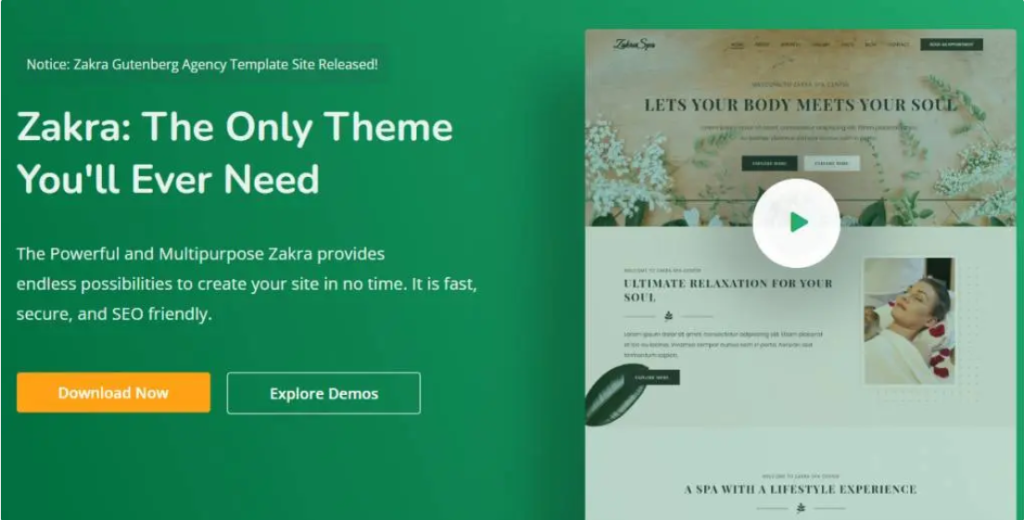这个轻量级主题将帮助您创建一个支持多种语言的快速加载网站。此外,它还支持开箱即用的加速移动页面 (AMP)。但是,Zakra的许多预构建模板仅适用于更高级别的高级许可证。
