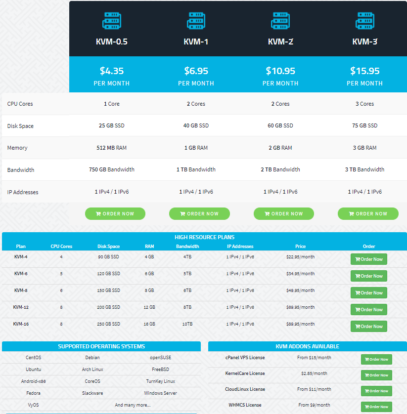 KVM VPS 完全虚拟化,具有更好的资源隔离和可靠性,并由高速 SSD 驱动器提供支持。它支持从 Linux 到 BSD 和 Windows 的各种操作系统。