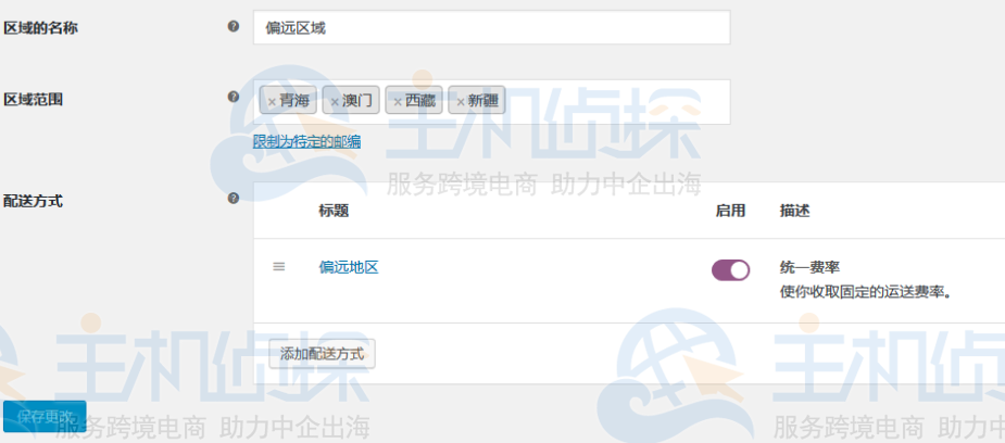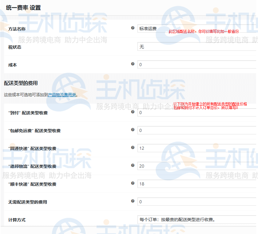 - 如果你没有设置其他区域,那么所有的地区配送费用为统一的;