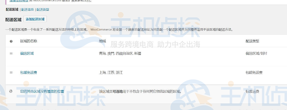 添加好了之后,你的产品即可选项这几种配送的类型,下面我们开始添加配送区域。