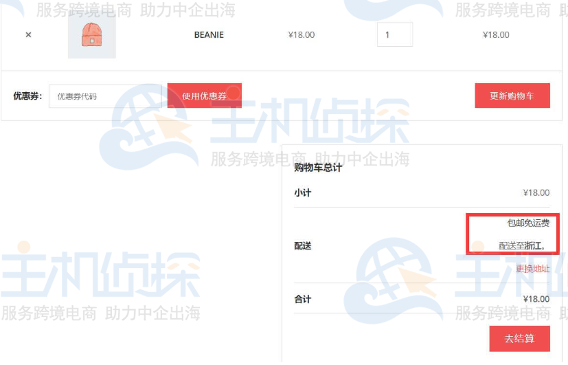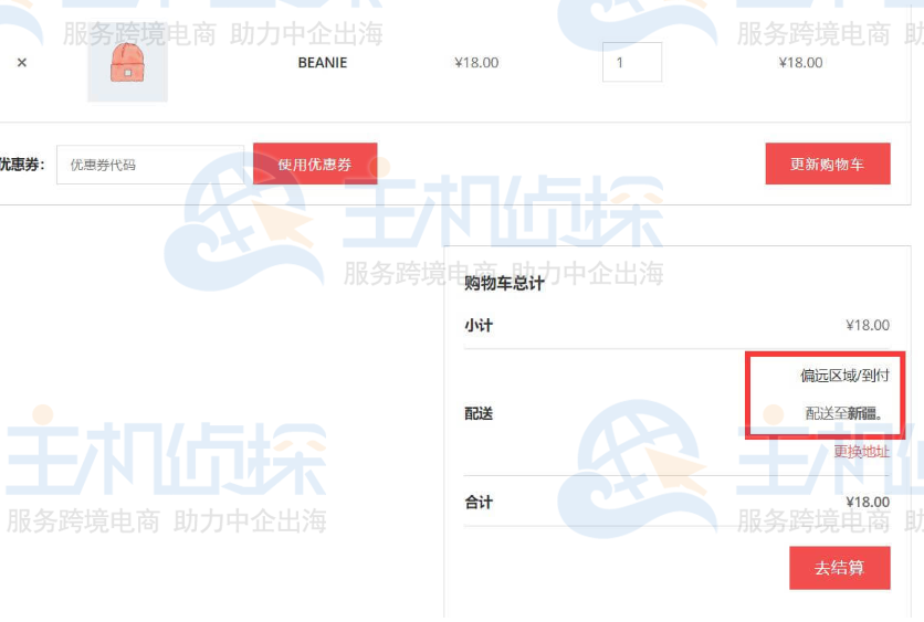 包邮区域显示效果: