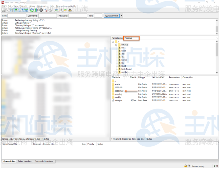 6.现在您位于/,您可以导航/backup目录和backup/cpbackup目录。