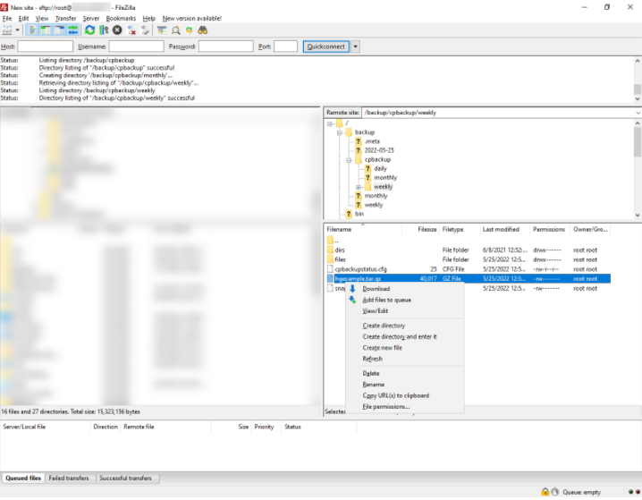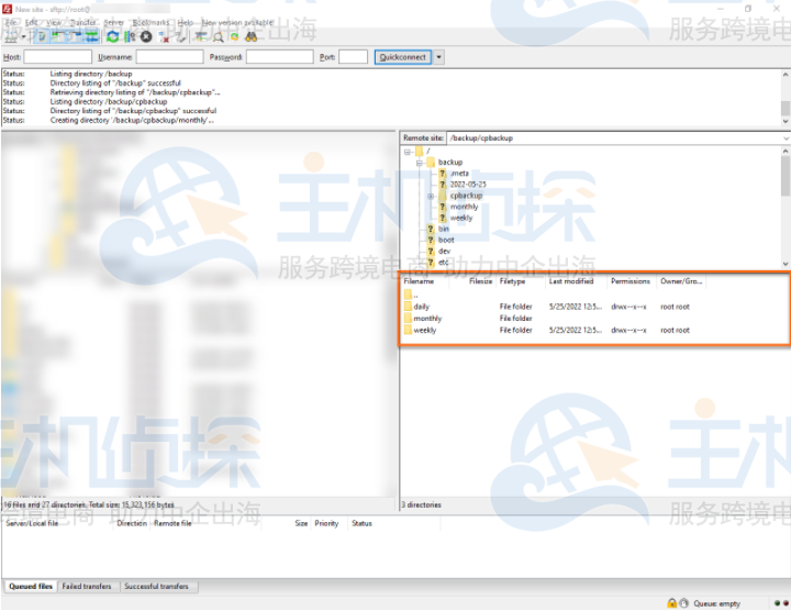 设置好Filezilla(或首选FTP应用程序)后,继续导航到WHM中的备份目录。