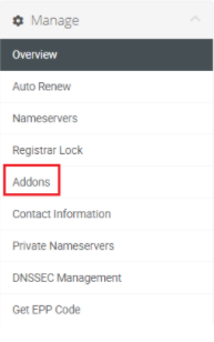在您的域详细信息页面中,单击左侧导航菜单上的“插件”按钮: