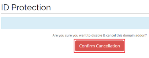 系统将提示您确认您的决定。如果您希望继续禁用 whois/ID 保护,请单击“确认取消”按钮: