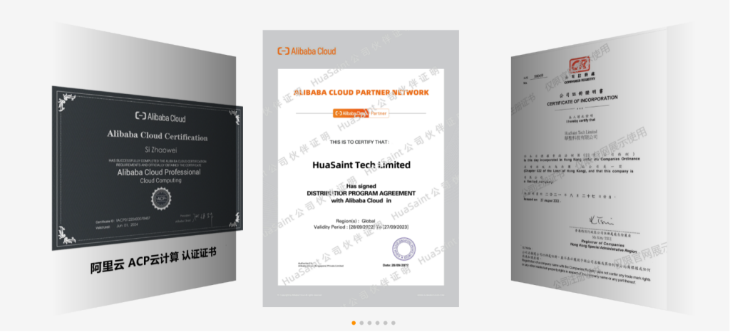 HuaSaint(又称华圣云),拥有大陆及香港合法商标,隶属于 華聖科技有限公司,是亚太领先的互联网IT产品服务商,专业为企业客户提供云计算基础服务、互联网行业解决方案,、云安全技术研发等产品和服务,当前是 阿里云国际站 旗舰级 经销商,华为云国际站业务总代理,与阿里云华为云携手共同为企业与个人开发者提供上云协助,共同分享云上经验,给客户带来了很多帮助!