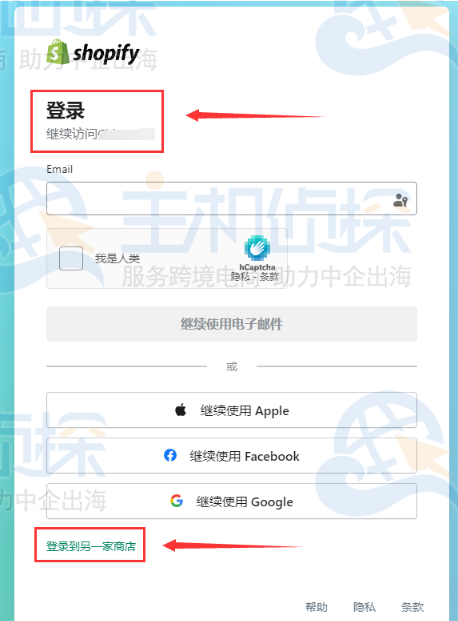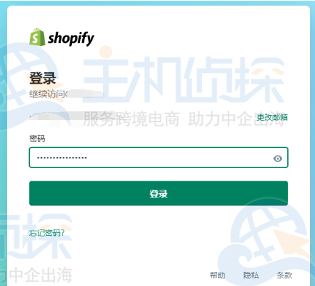 然后输入与你的Shopify账户关联的邮箱和密码即可登录;
