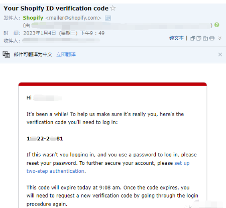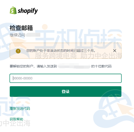 为确保账户安全,如果你已经超过三个月或更长时间没有登录Shopify账户,那么在下次登录的时候需要在登录过程中进行身份验证。