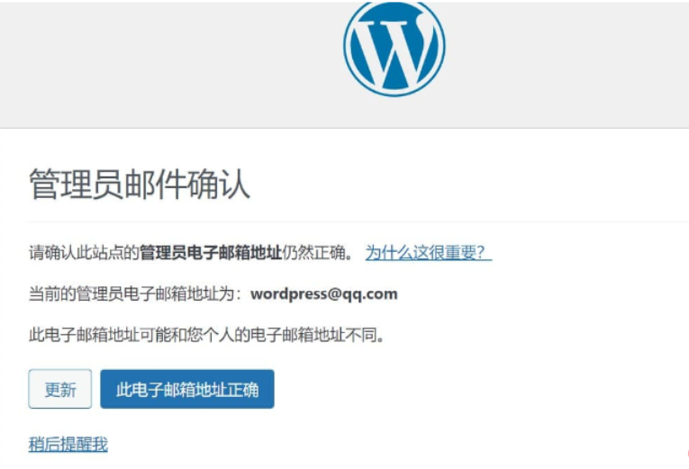 2、WordPress的5.3.0版本开始就引入了一个叫过滤器,这个功能就是每六个月都会进行邮箱地址的检验,也就是如下的页面:
