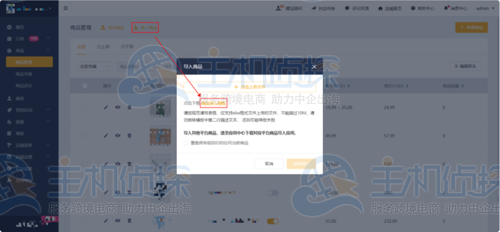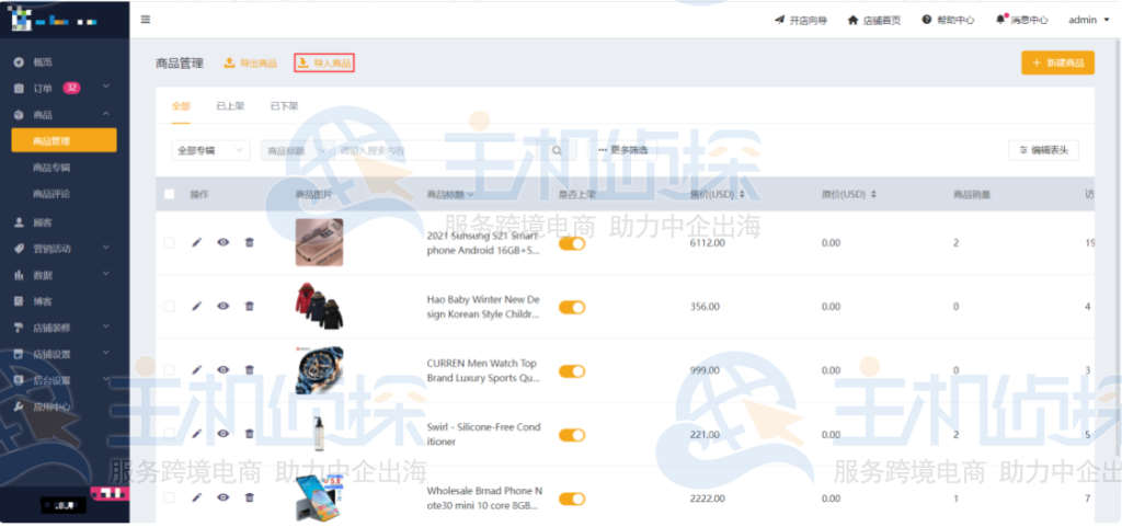 1.点击「商品」>「商品管理」,点击【导入商品】;