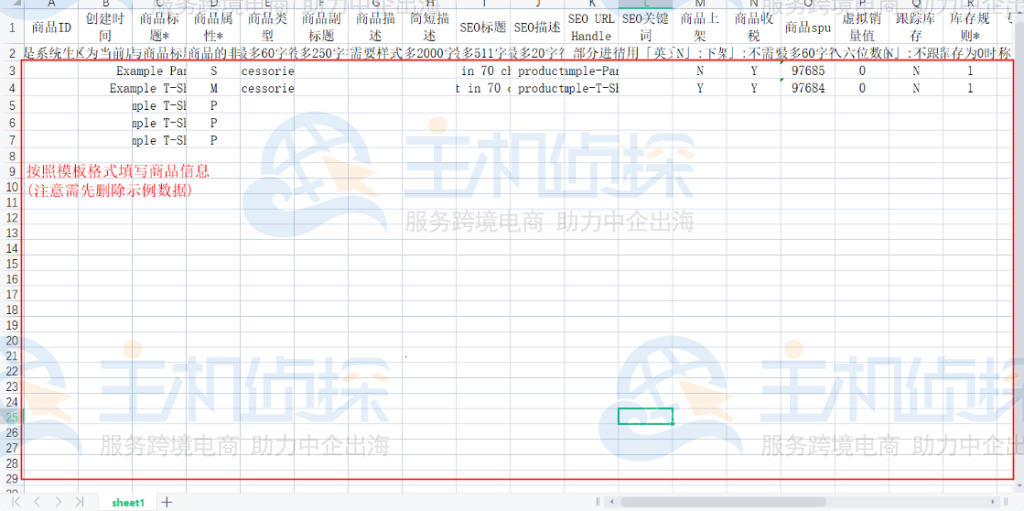 3.按照模板格式填写商品信息并导入;