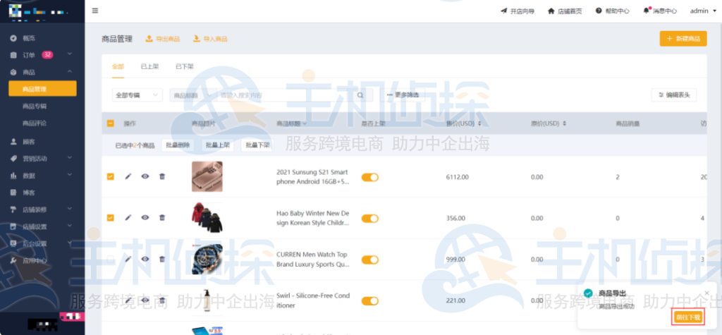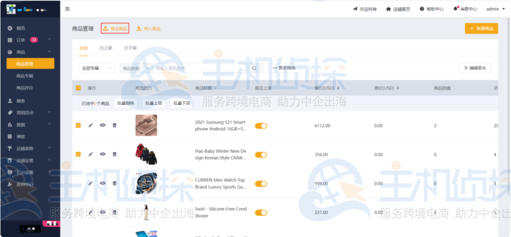 1.点击「商品」>「商品管理」,点击【导出商品】;