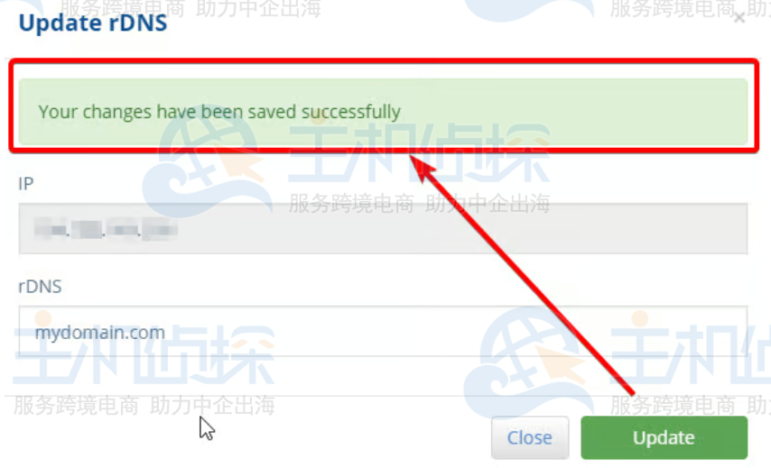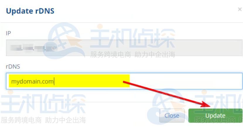 这将在页面上打开Update rDNS弹出窗口,其中显示IP地址和该IP的rDNS记录。请确保您的浏览器启用了弹出窗口。