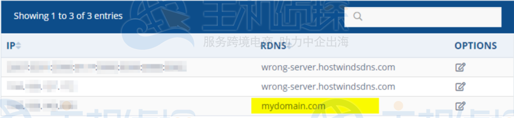 步骤3:找到您希望更改的rDNS记录,然后单击Options下的编辑图标。