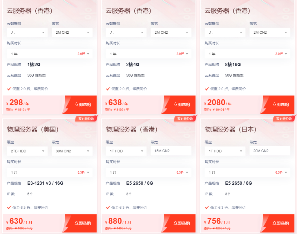 精选海外服务器,双11低至 5 折,价格腰斩,所有周期均享「续费同价」。