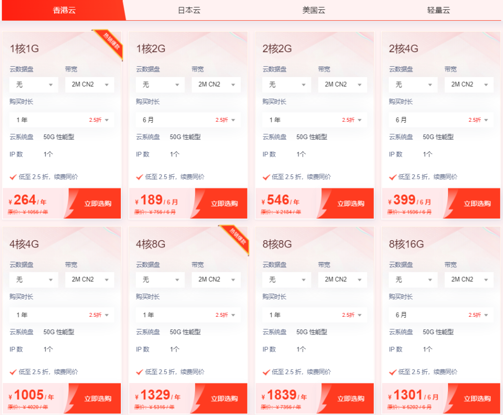 恒创严选海外云低至 2.5 折,全年底价!购买越久越便宜,抓紧抢购。