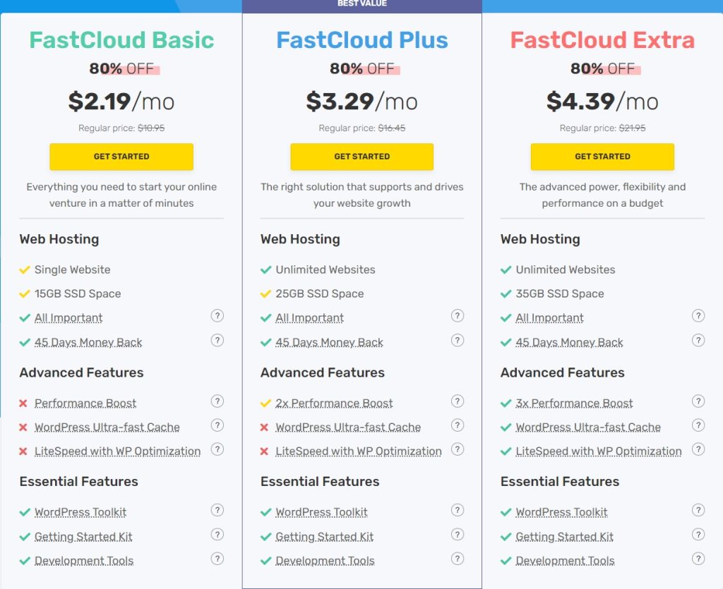 FastComet虚拟主机全场2折促销,每月$2.19起,支持部署单个或多个站点,使用固态硬盘存储,提供免费域名注册、转移等服务,45天退款保证。