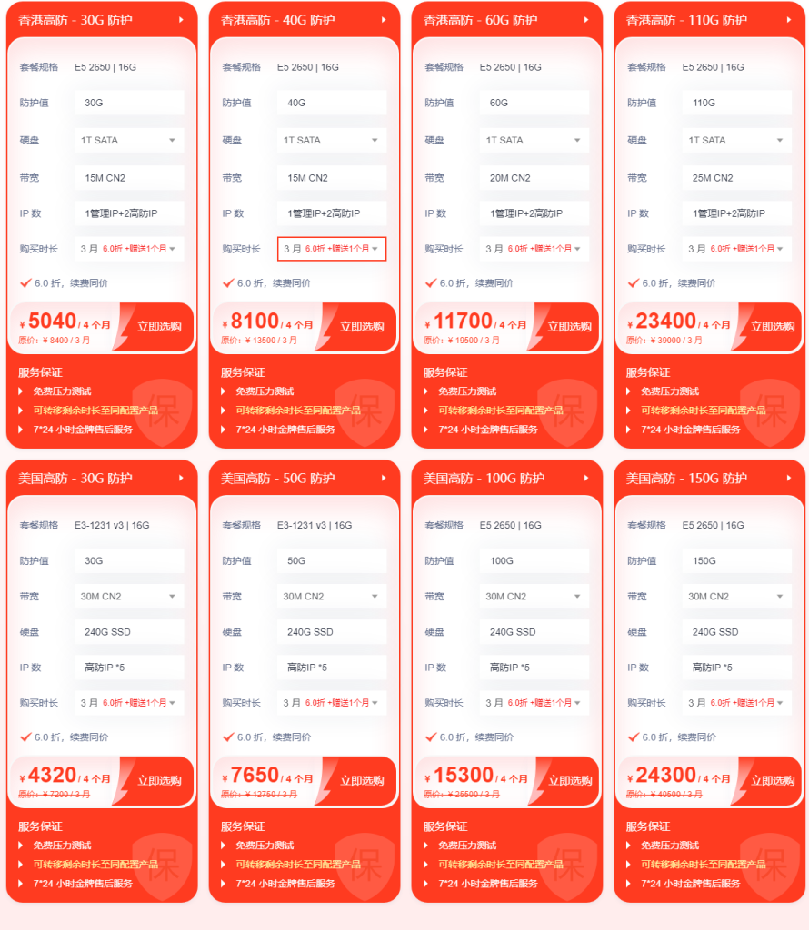三、DDoS 防护:买3月送1月,买1年送半年
