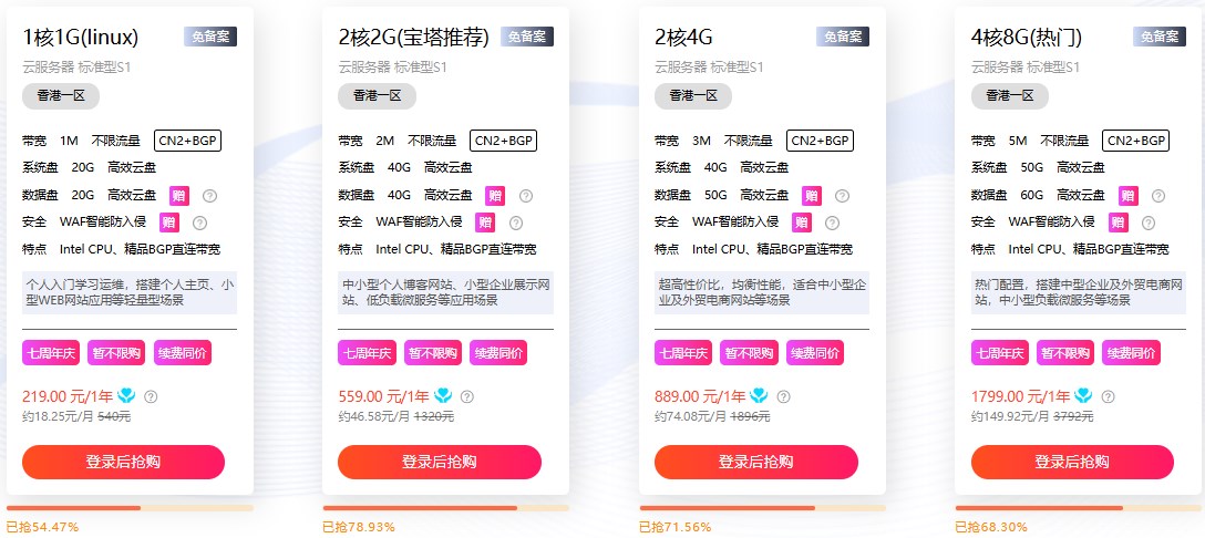 2、香港云虚拟主机普惠型(个人轻量建站主机)