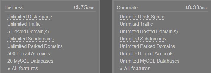 ③、CORPORATE方案:无限域名、无限数据库、无限E-Mail账户。