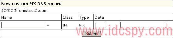 重要:如果要向基域中添加一条MX记录,就将名称栏留空。