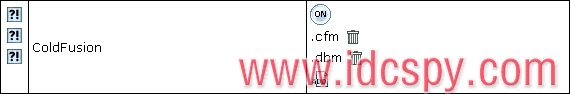 •如果你需要添加让ColdFusion处理的自定义文件扩展名,点击ColdFusion选项边上的Add(添加)图标: