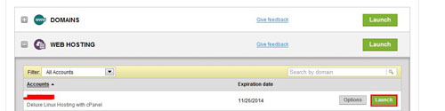 1.登录到GoDaddy账户,点击Linux主机后面的“Launch”绿色按钮进入控制面板。