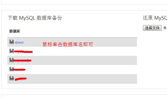 3.此时我们可以看到对网站各部分的数据备份选项,可以根据需求选择自己想要备份的数据。因为这里演示备份数据库,所以直接鼠标单击所要备份的数据库。
