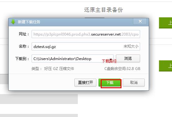 7.点击后会弹出一个对话框,选择好下载路径后点击“下载”即可备份到本地电脑。